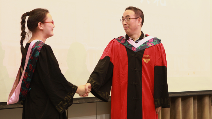 赵银德教授和俞海山教授为毕业生逐一颁发证书并合影。按下快门不过一瞬,而这一瞬便是回忆里的永远,亦是永远的不可再来。礼毕人散场,个个空了的座位却还留着最后的余温,仿佛那年今日,你第一次坐下的温度。