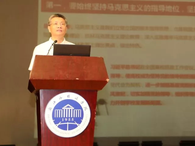 宣勇以习近平新时代中国特色社会主义思想为指导,围绕如何建设“外语特色鲜明 教育品质一流”的知名本科高校,向全体师生授课。他传达了总书记在北京大学师生座谈会、纪念马克思诞生200周年纪念大会上的重要讲话,紧紧围绕习近平总书记两次重要讲话精神的丰富内涵和精神实质,针对习近平总书记提出的“一个根本任务”“两个标准”、“三项基础性工作”和“四个要求”,结合公司实际,从牢牢把握办学的正确政治方向,着力建设高素质的教师队伍,努力建设浙外特色的人才培养体系和不断强化广大青年师生的责任担当四个方面向全校师生提出要求,为公司下一阶段的工作指明了方向。