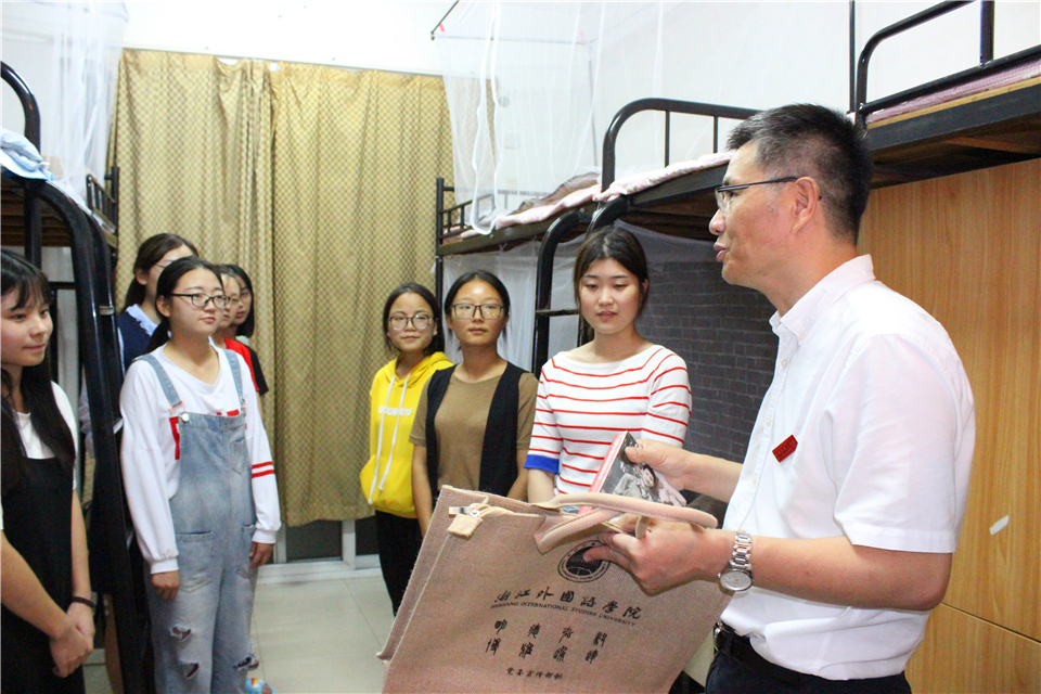 在看望同学们的过程中,当得知东和公寓1幢320寝室郑丹青、季雨欣2位同学的姐姐都是从浙外毕业的,而她们正是受了姐姐的影响报考了浙外时,宣勇高兴地说,浙外是所有情怀的大学。