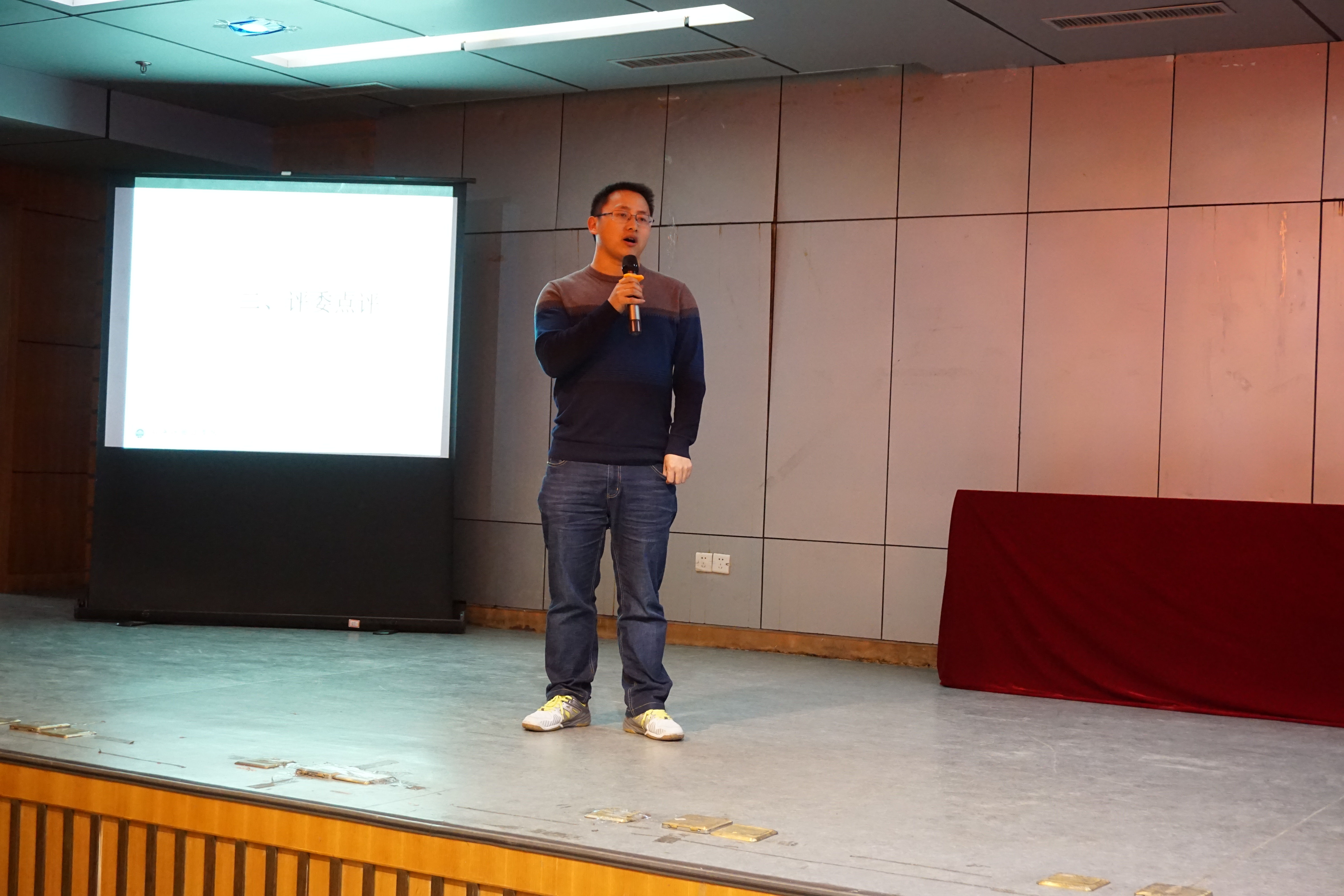 各团支部代表通过PPT展示的方式,向场下的评委和观众详尽地阐述了本团支部的制度建设、文化建设、组织建设等,同时也跟大家分享了其中的趣事:丰富多彩的团日活动,独具个性的班报设计,硕果累累的班级荣誉,温馨和谐的寝室生活,让大家在这份回忆中看到了每个支部独有的特色。在附加表演环节,各个团支部更是才艺横出,秀出了不一样的商院特色。例如:15旅管4班双语诗朗诵《再别康桥》,15旅管1班带来的小品《好好好》,16国商1班原创诗朗诵《青春的力量》,充分展示了班级风采及同学们的学习生活,评委与观众的阵阵掌声更是将此次比赛推向高潮。展示结束后,周长喜老师就此次展示进行点评,肯定了各团支书、团支部的努力成果,也针对此次比赛情况提出几点不足与建议,并衷心希望他们能够认真的将团支部建设得更好。