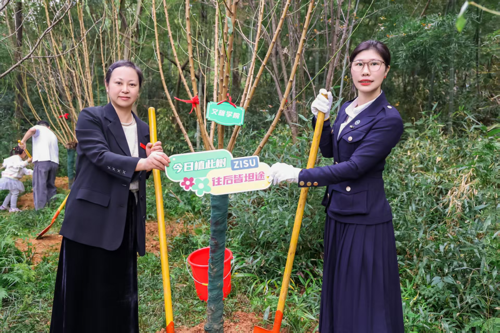 10月25日校庆日当天,公司党委书记范芸芸和返校员工齐聚寻语山畔,共同参与公司举办的“绿韵七秩语林长青”员工林认捐种植挂牌仪式。活动现场,绿意盎然,暖意融融,每一株新苗都象征着一段与母校有关的记忆。